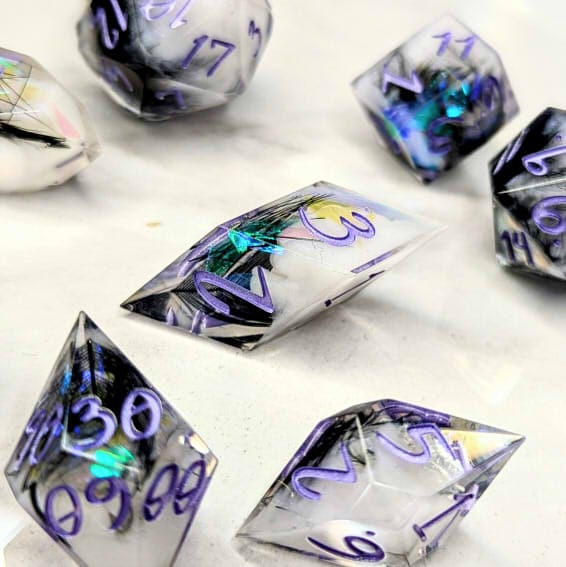 Due to differences in screen display, in person colors may differ slightly. Dice are handmade and minor imperfections may be present.