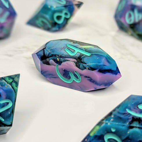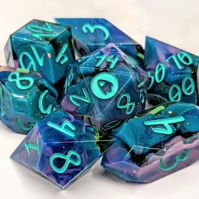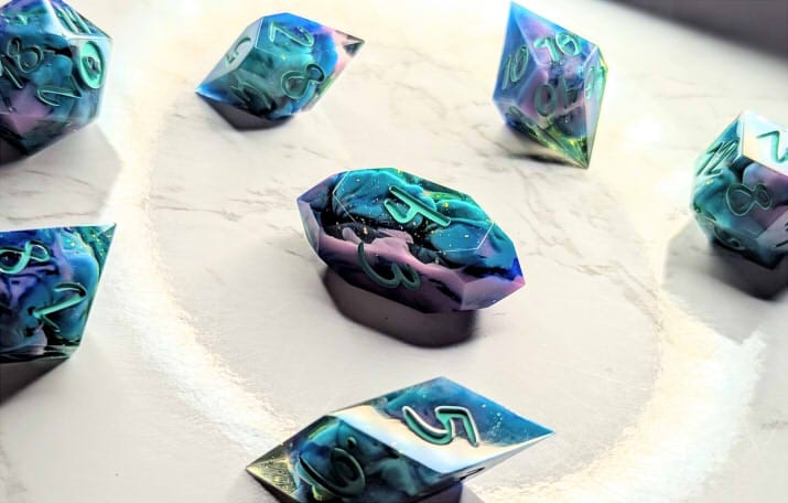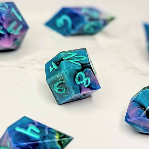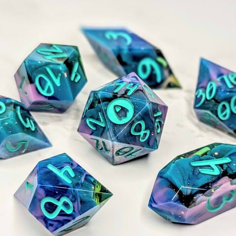 Due to differences in screen display, in person colors may differ slightly. Dice are handmade and minor imperfections may be present.