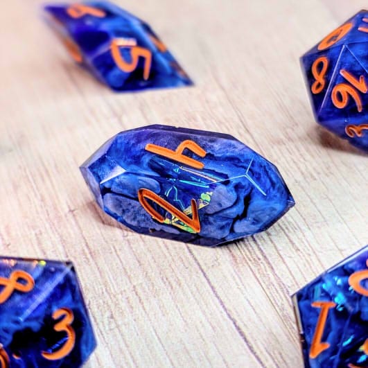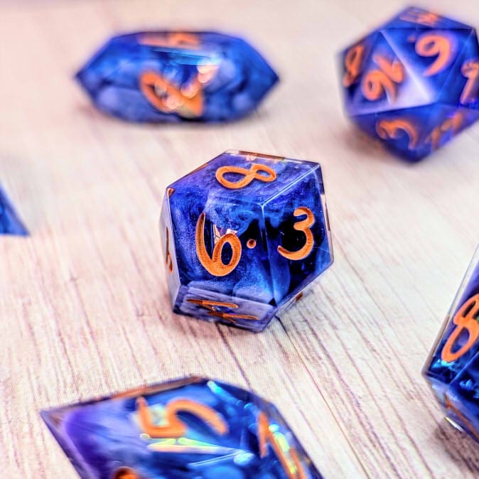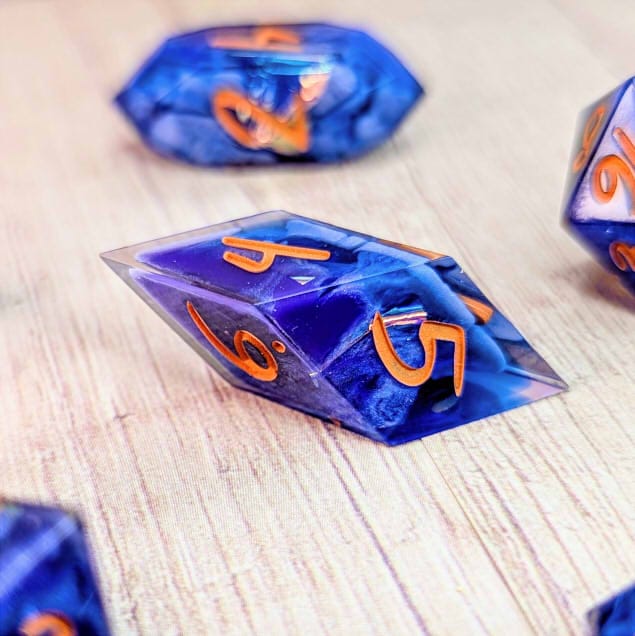 Due to differences in screen display, in person colors may differ slightly. Dice are handmade and minor imperfections may be present.