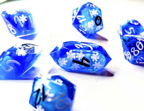Due to differences in screen display, in person colors may differ slightly. Dice are handmade and minor imperfections may be present.