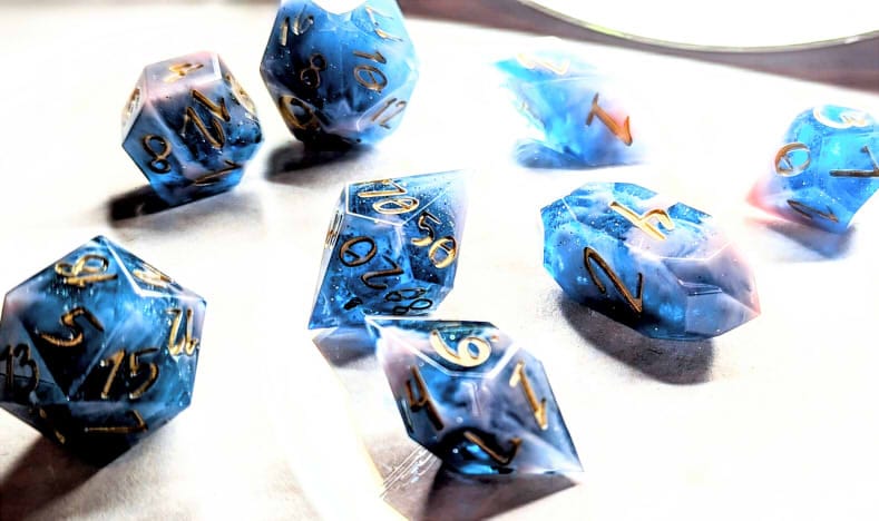 Due to differences in screen display, in person colors may differ slightly. Dice are handmade and minor imperfections may be present.