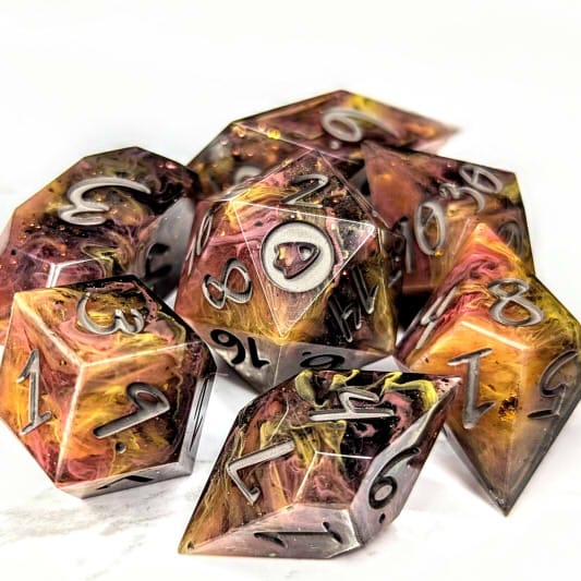 Due to differences in screen display, in person colors may differ slightly. Dice are handmade and minor imperfections may be present.