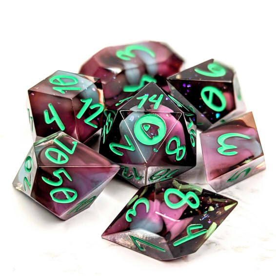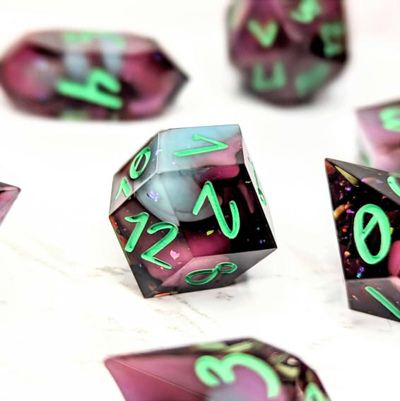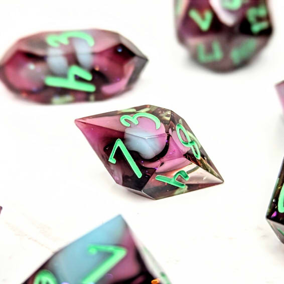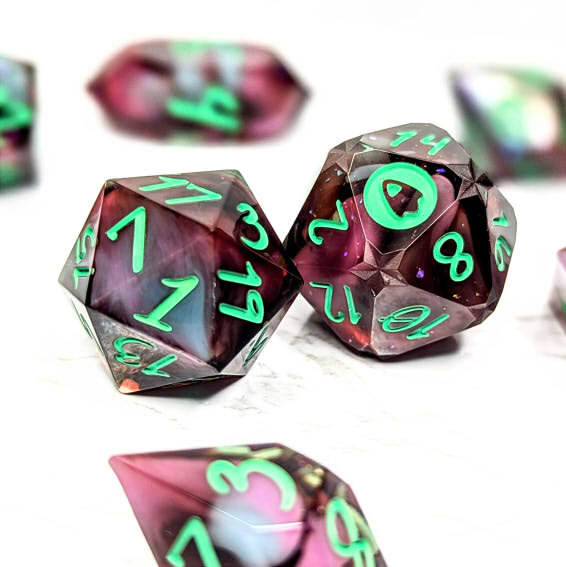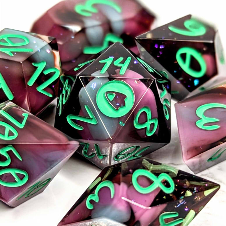 Due to differences in screen display, in person colors may differ slightly. Dice are handmade and minor imperfections may be present.