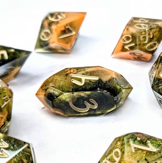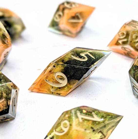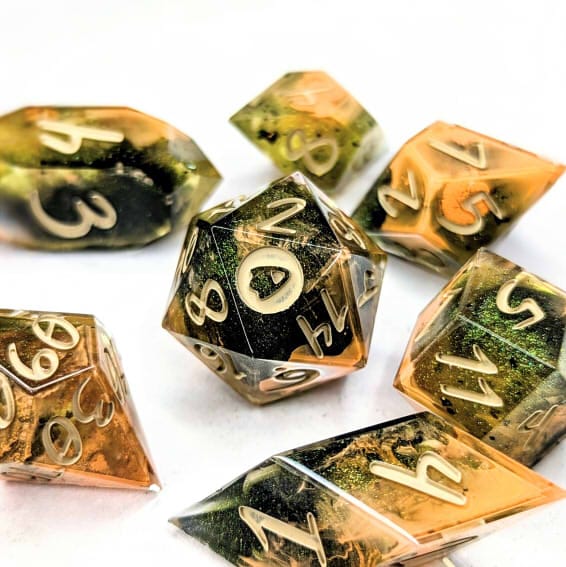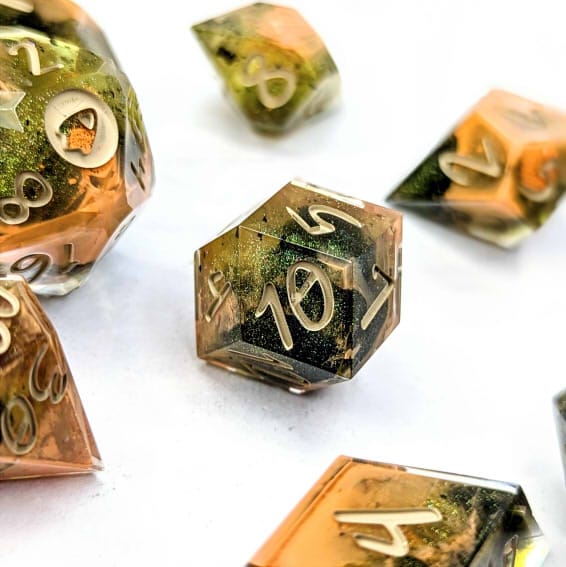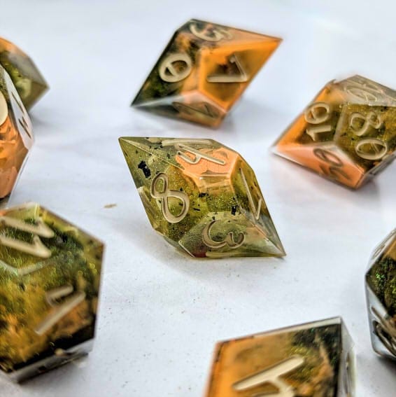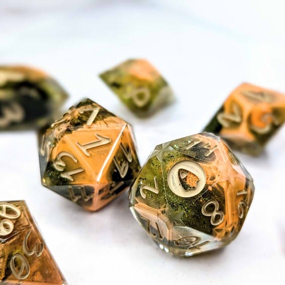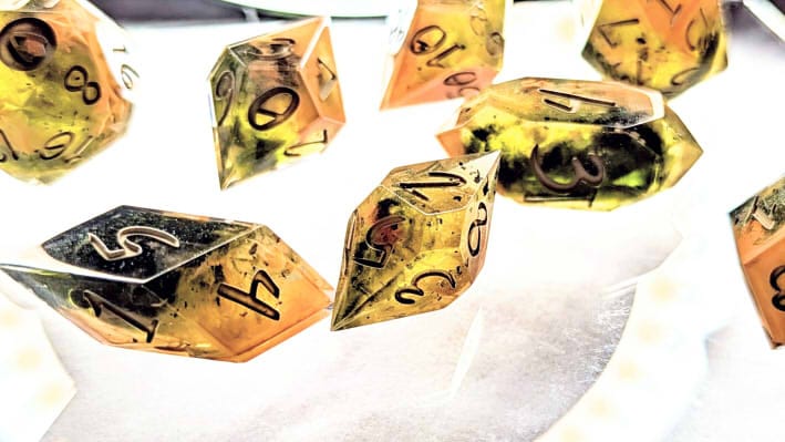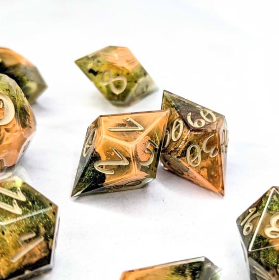 Due to differences in screen display, in person colors may differ slightly. Dice are handmade and minor imperfections may be present.