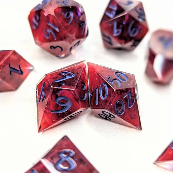 Due to differences in screen display, in person colors may differ slightly. Dice are handmade and minor imperfections may be present.